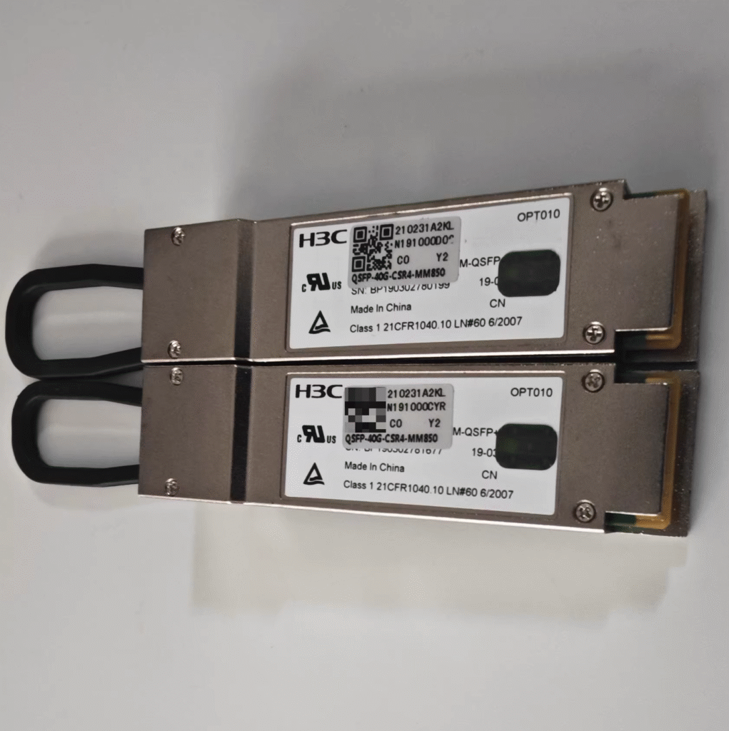 H3C QSFP-40G-CSR4-MM850,属于华三 40G CSR4 短距多模光模块,遵循行业通用 40GBASE-CSR4 规范,适配 H3C 全系列企业交换机、数据中心交换机及防火墙设备。